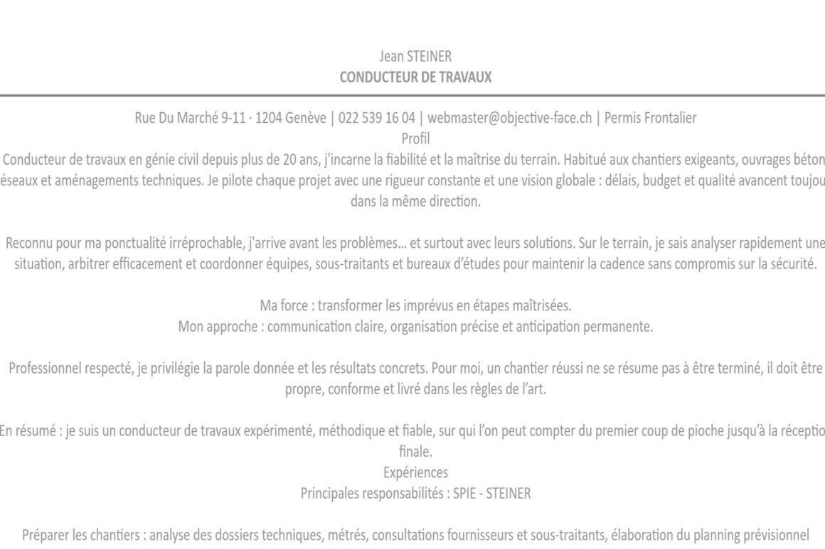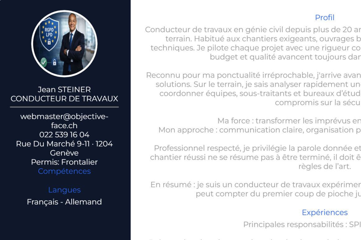 Créer votre CV Suisse - Plaquiste EFSSO BTP